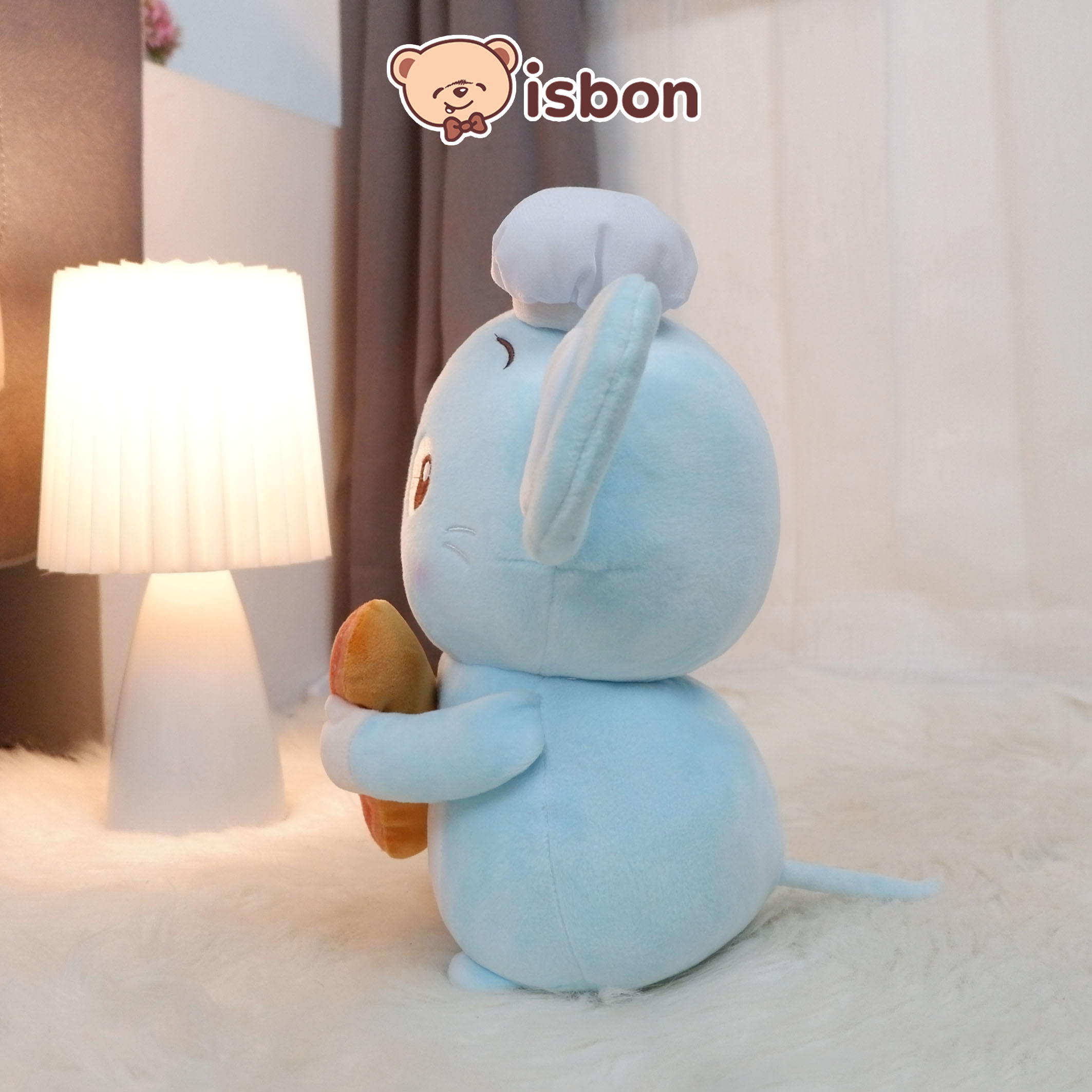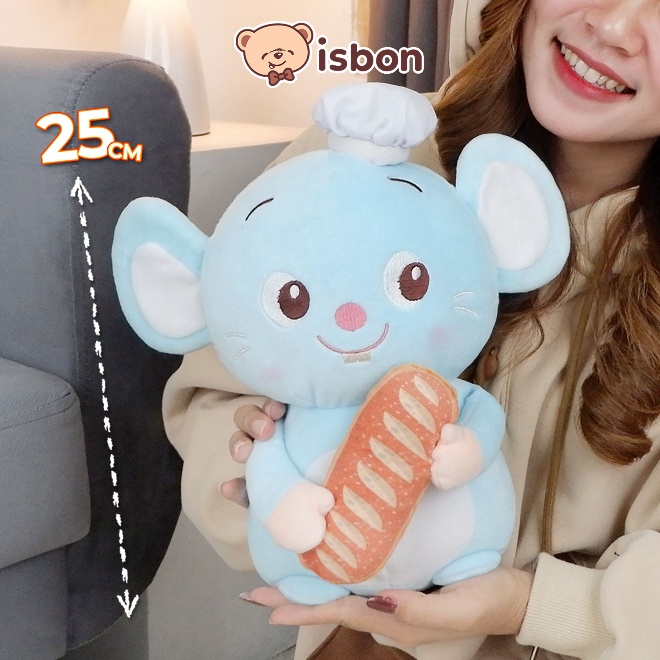 - Desain Unik: Tikus menggemaskan memegang aksesori roti dengan detail topi di kepala.